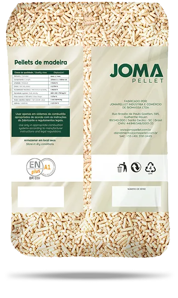 Produto tipo exportação, 100% natural, biodegradável. A JomaPellet compromete-se com a excelência, fornecendo pellets de alta qualidade e certificações que atestam nosso compromisso ambiental. Durante a queima, os pellets geram uma quantidade reduzida de emissões poluentes, tornando-os uma opção mais limpa e amigável ao meio ambiente. As an export-type product, 100% natural, and biodegradable, JomaPellet is committed to excellence, providing high-quality pellets with certifications that attest to our environmental commitment. During combustion, the pellets generate a reduced amount of pollutant emissions, making them a cleaner and environmentally friendly option.